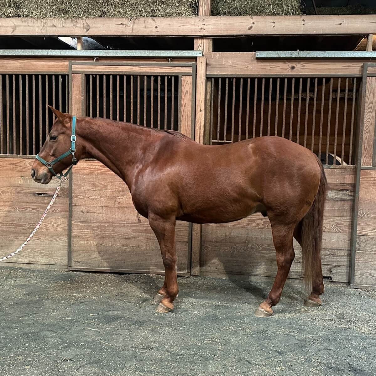 1 Bay QH Gelding, 6yo, 15.1 hands, English W/T/C, jumps a cross-rail, great in the ring or in the field. has both leads, and is great on the trail, up and down hills, great in the water, good on the road. Great alone or in company. Western, has neck rein, solid built chunky boy. He stands quiet for mount and dismount. He has good ground manners, is easy to catch, lead, load, haul, stands tied, bathes, grooms, saddles, and bridles, and is quiet.