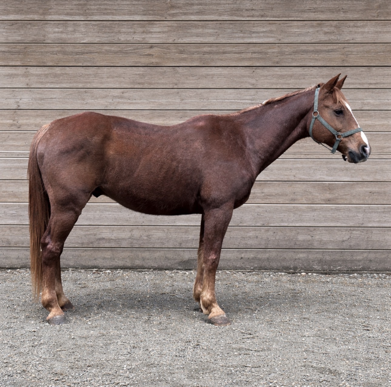 32 Chestnut QH Gelding, 14yo, 14.2 hands, Beginner safe, very well trained Western, neck rein, turns around, has smooth and steady gaits, confident on the trail, good in the road, in a field, or wooded trail. Will go English, will jump and has both leads. Gentle and kind, he has ground manners and is great in new places.