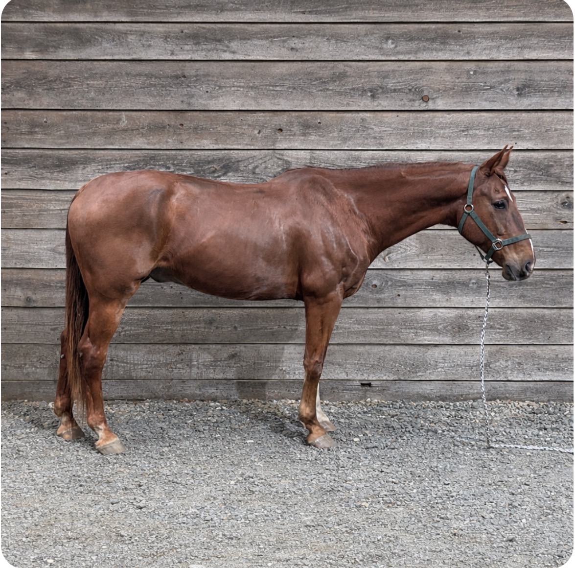 1 Bay QHXTB Gelding, 10yo, 16 hands, English W/T/C has both leads, and jumps. He has a ground covering walk, smooth, beautiful floaty trot and canter. He is easy to catch, lead, load, haul, stands tied, bathe, groom, pick feet, saddle, bridle, and quiet for the vet and farrier. Stands for mount and dismount, and moves off your legs.‍
